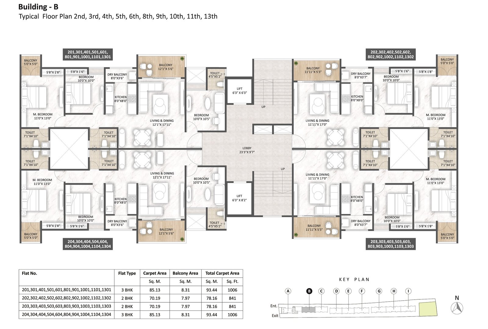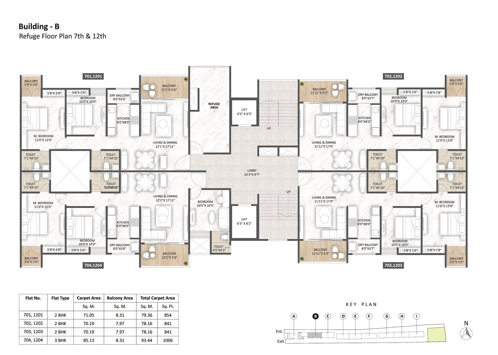 - Close dry balcony for each flat with dado tile up-to 3.5 ft.